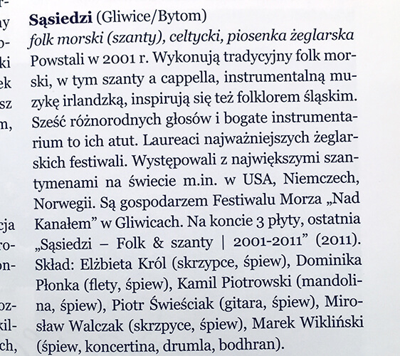 Od ponad 20 lat opisujemy polską (i nie tylko) scenę muzyki morza na łamach naszych autorskich lub współtworzonych przez nas serwisów internetowych lub czasopism oraz w mediach i audycjach ogólnopolskich. Wszyscy razem mamy na koncie solidną bazę tekstów, zdjęć oraz sporą wiedzę o naszej scenie. Dlatego postanowiliśmy połączyć siły w tym projekcie i stworzyć coś, czego jeszcze w Polsce nie było.